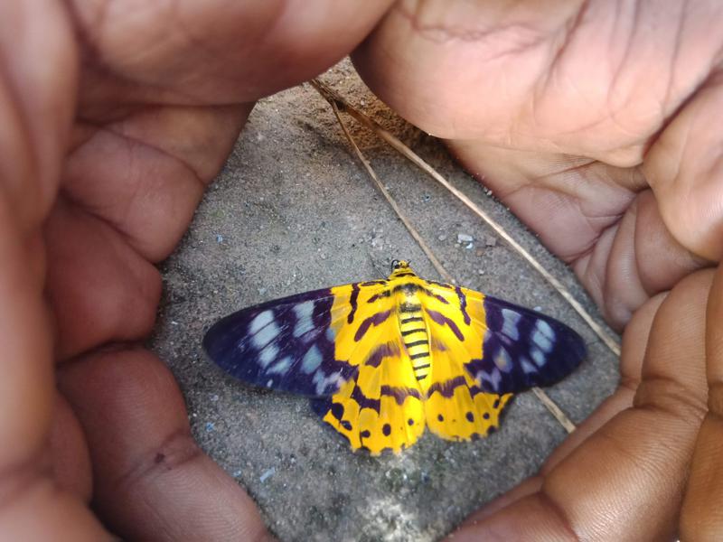 Bright Yellow And Violet Blue Butterfly