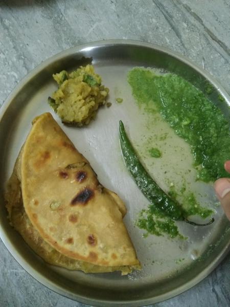 It Is Dinner Time, Aloo Paratha With Chatni And Green Chilli